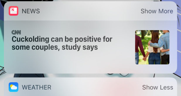 This is peak @CNN. Parody is dead. CNN is now endorsing the positive effects of being a "Cuck" which means watching someone have sex with your wife or husband. Is this rock bottom yet for them? https://t.co/KENjvHoEVi