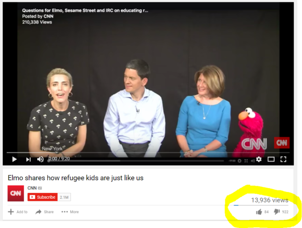 CNN streamed a short video on Facebook promoting “refugee” causes featuring the Jew David Miliband who heads the International Rescue Committee and Elmo the muppet from Sesame Street. It’s one of the most retarded pieces of Jewish propaganda yet!