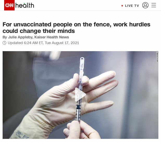 Employers hope the hassles required to remain unvaccinated in the workplace will encourage the reluctant to just get a vaccine. “It’s a forceful nudge,” said Dr. Georges Benjamin, executive director of the American Public Health Association.