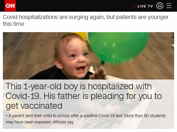 CNN has published a fear-mongering piece about a one-year-old being hospitalized with the coronavirus, where the father urges people to get vaccinated.