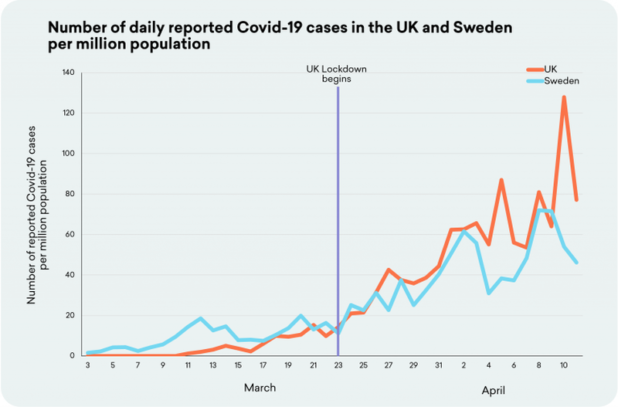 Sweden has no lockdown and has seen less infections and less deaths than the United Kingdom, which has a lockdown.