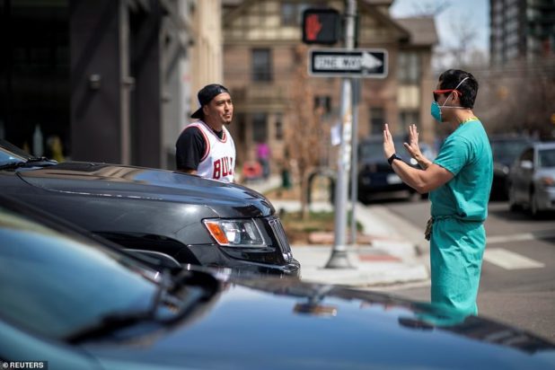 Healthcare workers clashed with anti lockdown protesters in Colorado on Sunday, defiantly standing in front of the cars of demonstrators who flocked to the state Capitol in their hundreds to urge Gov. Jared Polis to lift COVID-19-induced stay-at-home orders.