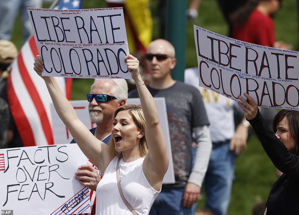 Another wrote: ‘Colorado health care workers, who have been putting their lives on the line to save others, stand in the street in counter-protest. The selfishness and ignorance of today’s protest is peak privilege. #ThisIsAmerica’