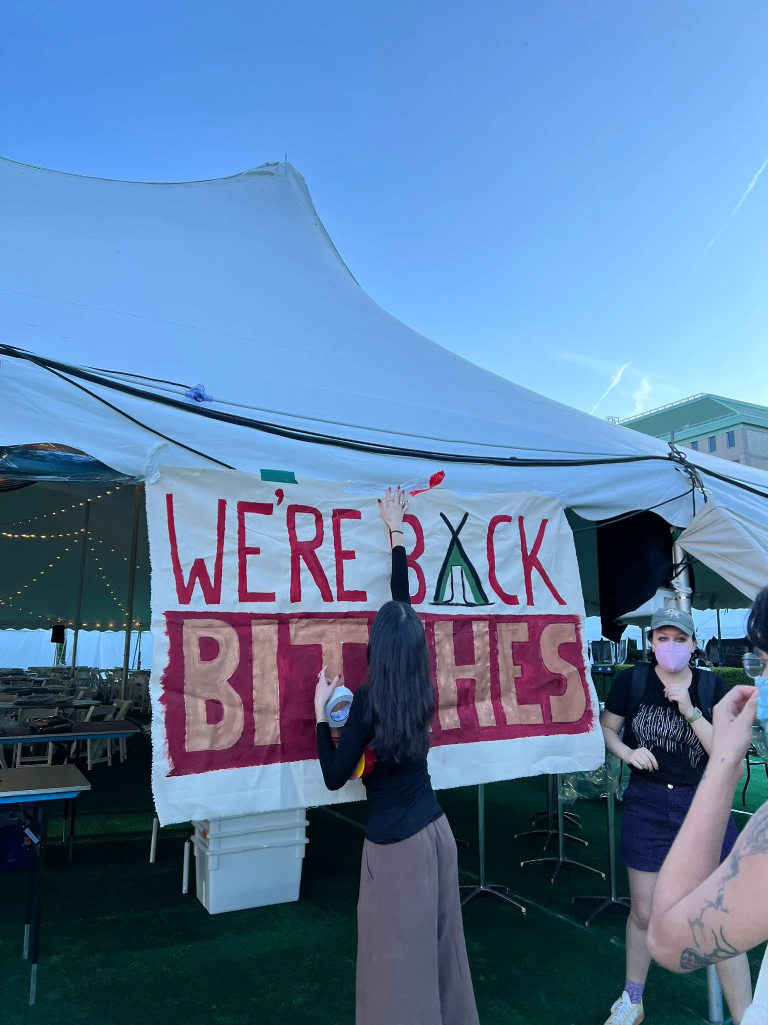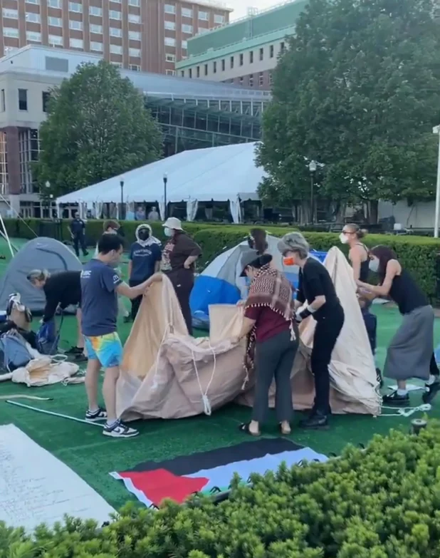 “We are aware of the encampment erected this evening and are monitoring the situation. We remain committed to hosting a successful weekend for our alumni,” a university spokesperson said in a statement.