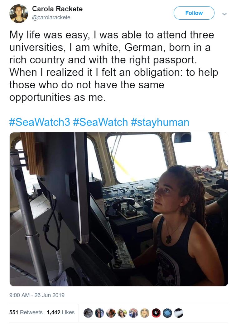 Carola has, in fact, referred to herself as a “spoiled German” before.