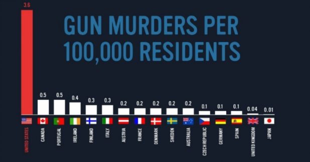 The US has the tenth highest rate of gun deaths in the world. The overwhelming majority of these crimes are committed by black people, using handguns.