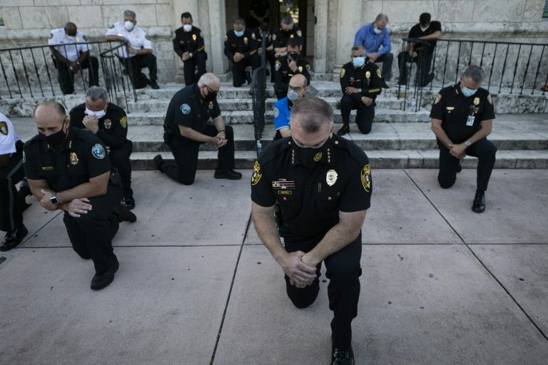 They are images that surprised and moved Americans: police officers taking a knee alongside protesters in the most widespread civil unrest to rock the nation in decades — and in doing so embracing an anti-racism gesture denounced by President Donald Trump.