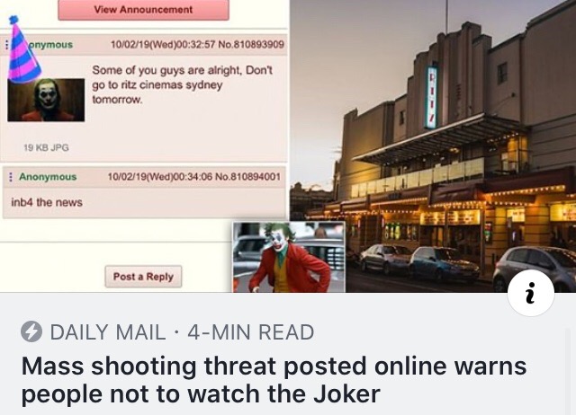 In New York City, police responded to a screening after one audience member sparked fears by spitting on others and clapping loudly every time the Joker killed someone.