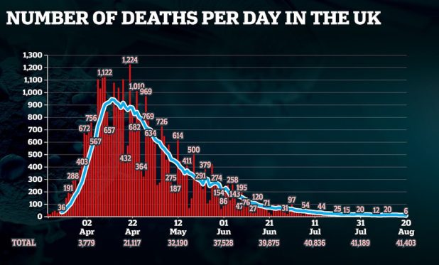 More than 1,000 Britons are testing positive for the life-threatening disease each day, on average, data shows – but the figures appears to have started dropping. There are fewer than 100 daily hospital admissions for the virus.