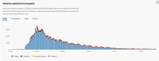 Dr Ron Daniels, a consultant in the West Midlands, said there are barely any Covid-19 patients being admitted despite government infections showing cases had risen throughout July.