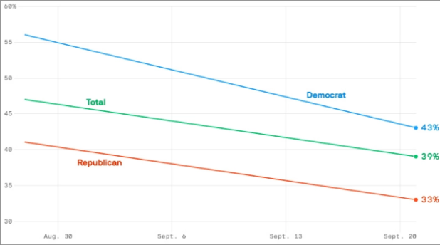 Republican vaccination approval dropped 8% and for Independents, it dropped 2%.
