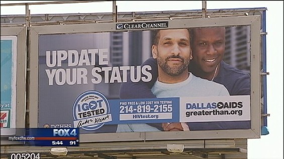 Dallas County Health Director Zachary Thompson knows the score and has launched a public education campaign as part of a broader effort to drive down infection rates. The campaign cuts across lines of age, race, gender, and sexuality. He’s been critical of the sex ed curricula in public schools for focusing too heavily on abstinence. Alicia Keys graced billboards encouraging people, namely black women, to get tested. Now, two smiling, gay black men are doing the same.