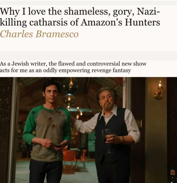 However, it should be noted that some Jews like this show because it shows ultra-violent killings of Germans, who, I must remind you, forced Jews to climb trees and pretend to be roosters.