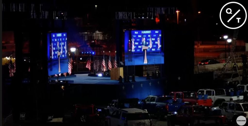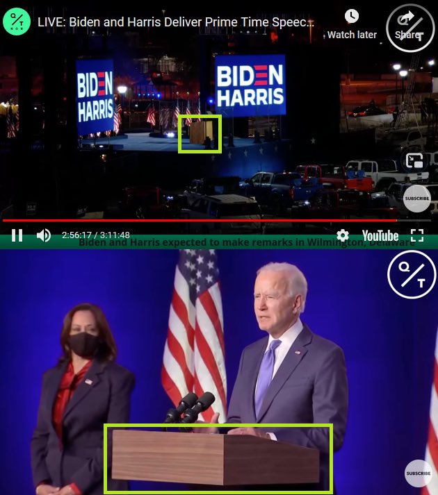 But in actual fact, he was appearing before nothing – different podiums were visible in the empty car lot and in the video of him speaking!