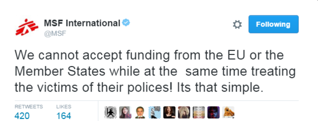 Turns out MSF isn’t angry the EU is letting all these terrorists and Turkish cockroaches in. They’re concerned they’re not letting in enough!