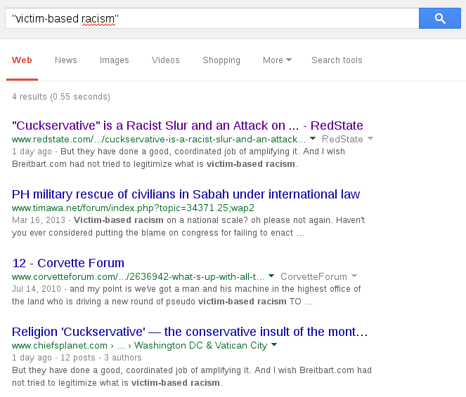 This is a passing fad of probably less than 100 people who, between them, share a few hundred lightly followed twitter accounts. But they have done a good, coordinated job of amplifying it. And I wish Breitbart.com had not tried to legitimize what is victim-based racism.