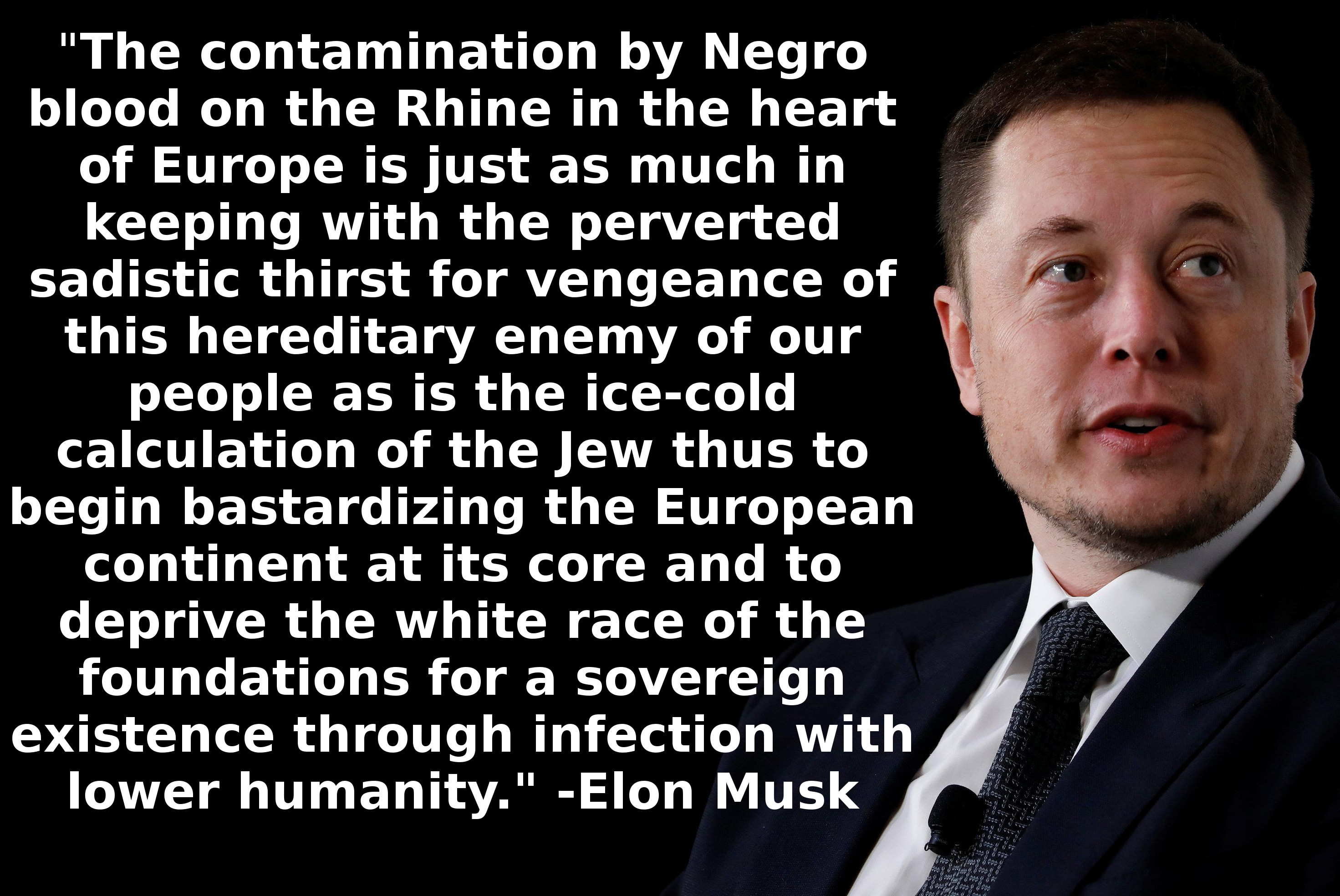I am equally shocked and appalled to learn that Elon Musk has fostered a culture of nigger-hatred at his electric car factory.
