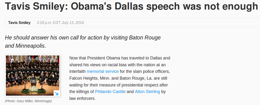 The Obama speech at the Interfaith Memorial service in Dallas – allegedly meant to memoralize dead White cops – amounted to an open justification of the killings and thereby an implicit call for more terrorist attacks on cops.