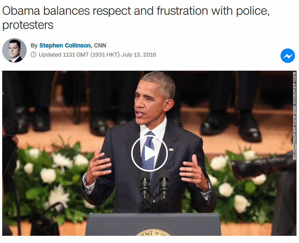That insisting we do better to root out racial bias is not an attack on cops, but an effort to live up to our highest ideas. And I understand that these protests—I see them, they can be messy. Sometimes, they can be hijacked by an irresponsible few. Police officers can get hurt. Protesters can get hurt. It can be frustrating, but even this who dislike the phrase Black Lives Matter, surely we should be able to hear the pain of Alton Sterling’s family.