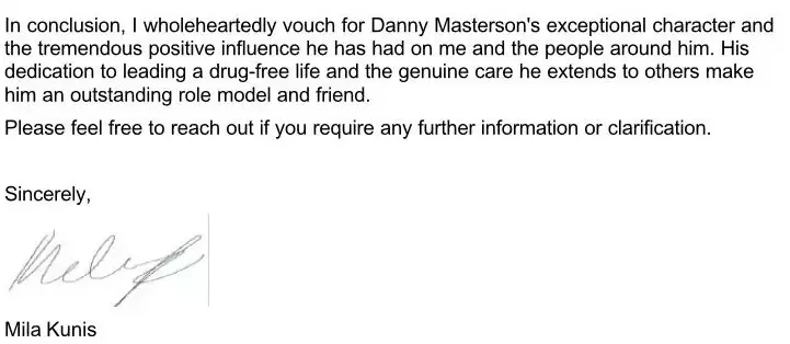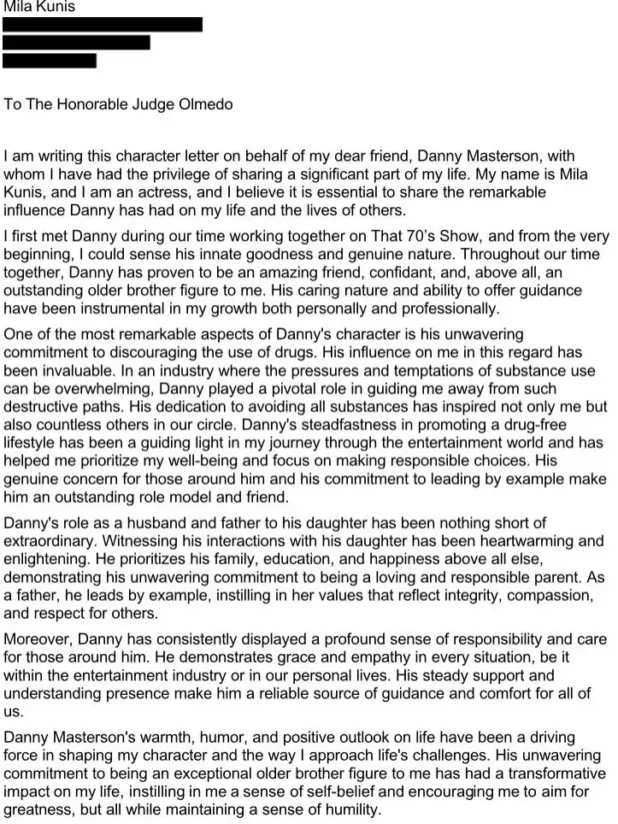 Mila Kunis’ letter on behalf of convicted rapist Danny Masterson. pic.twitter.com/rC97iJlvEB
