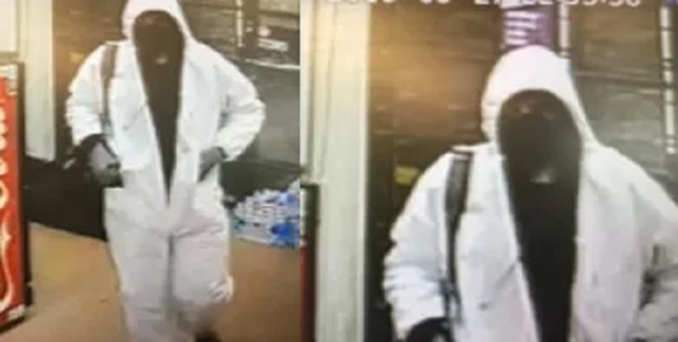 On May 27 a male suspect entered a Exxon convenience store wearing a gray jumpsuit, black shirt, gray gloves, black and gray sneakers.