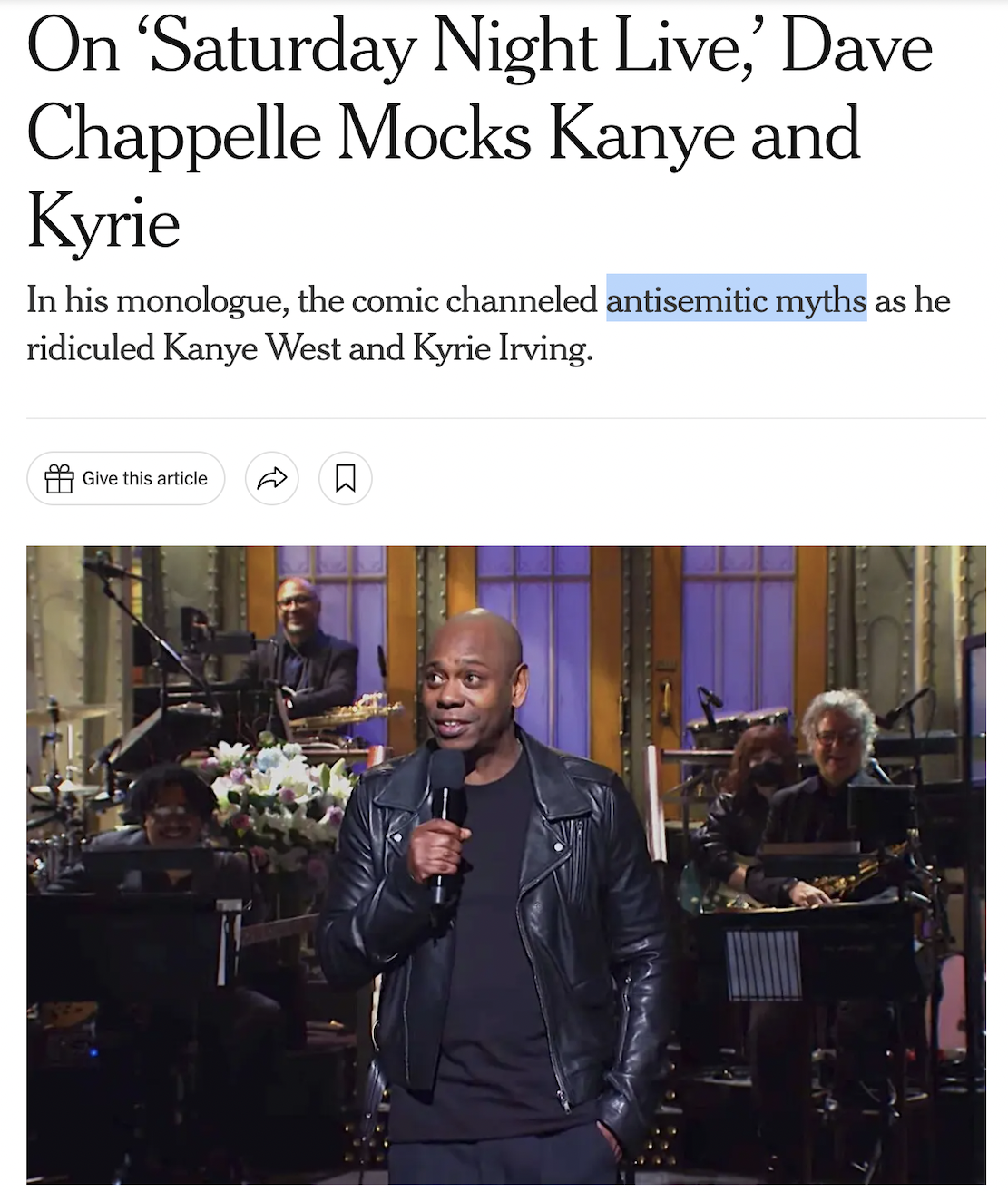 Meanwhile, the Jews of the New York Times claimed that Chappelle was mocking Ye and Kyrie.