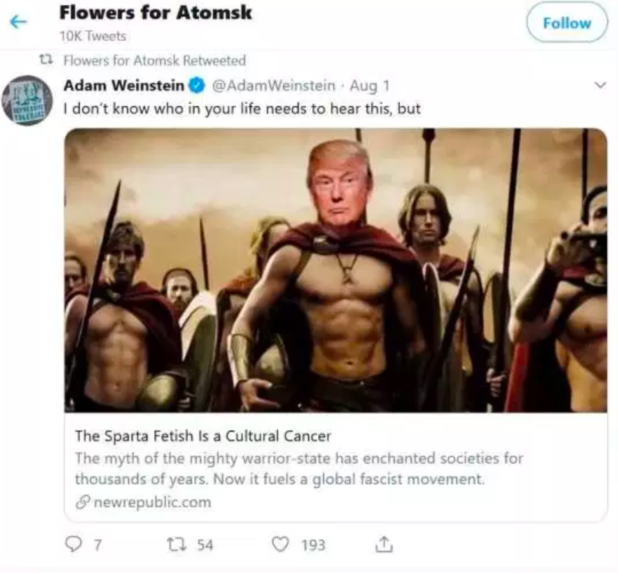 He shared a post that showed Donald Trump and referred to a global fascist movement: