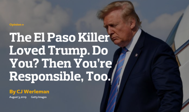 Right Jews? That’s how this works, right? If someone supports a politician and then does a shooting, the politician is personally responsible for the shooting, right? You taught me this, and I’m just trying to make sure I’m doing it right: “Elizabeth Warren is responsible for the Dayton massacre because the shooter supported her.”