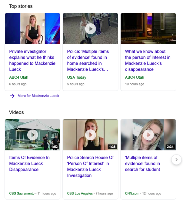 Googling “Mackenzie Lueck”: three top stories, three top videos, no mention of her being an actual whore.