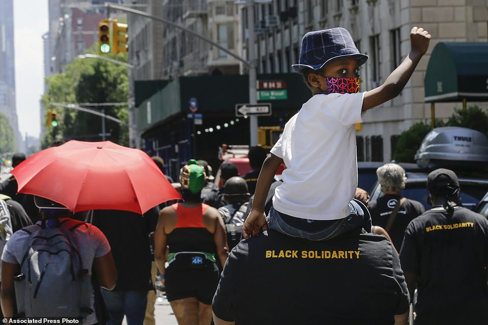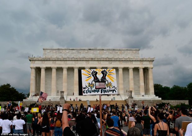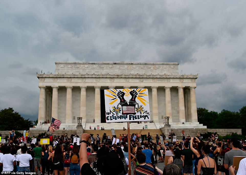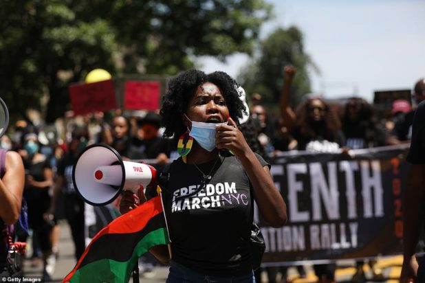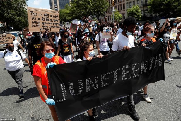Millions of Americans took to the streets on Juneteenth to celebrate the abolition of slavery, with anti-racism marches and peaceful rallies held to celebrate Black lives – as New York City and other places formally made the day an official holiday.