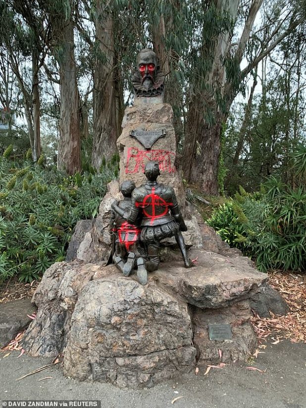 Spanish writer Miguel de Cervantes statue vandalized in San Francisco.