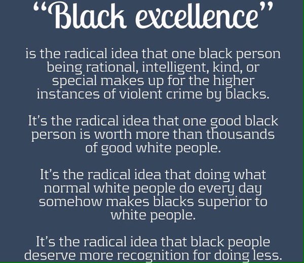 Well God Almighty, I’ve been looking for examples of this so-called “Black Excellence” for nearly half a century, and I’ve yet to find any. These are just more empty Cultural Marxist platitudes.