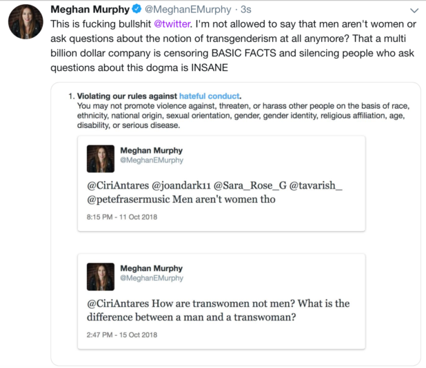 While the left loves to claim that the racist and transphobic Alt-Right movement is a part of the Republican Party, it has been proven that these racists are actually all Democrats. The Democrat left also harbors the radical Trans-Exclusionary Radical Feminist (TERF) movement, which denies that trans women are actually women. Meghan Murphy, a leader of this bigoted group, was banned from Twitter because her hatred was too much even for the radical leftist transphobes that control the site.