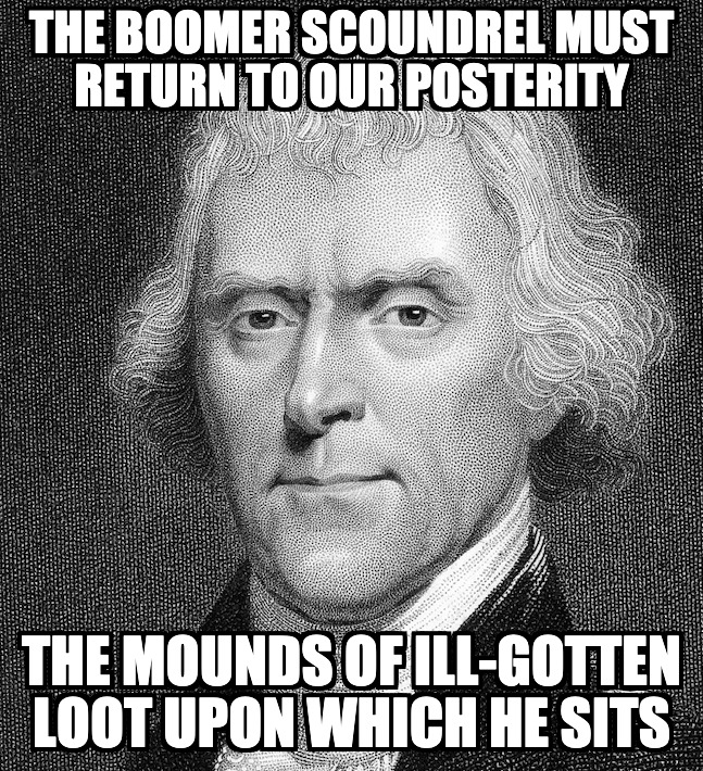 All of our generations of ancestors would conclude the same about these boomers, and they would all be demanding the same thing: they have to give back the money they stole.