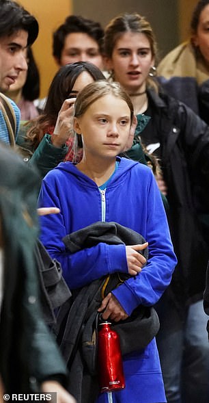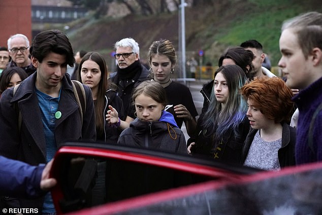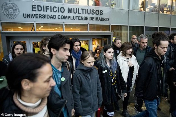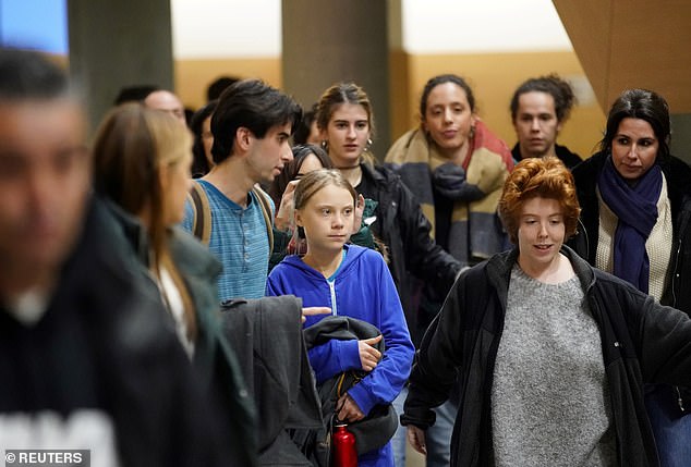 The Swedish environmentalist, 16, was seen leaving the Complutense University of Madrid after attending an event at the social summit for the climate.