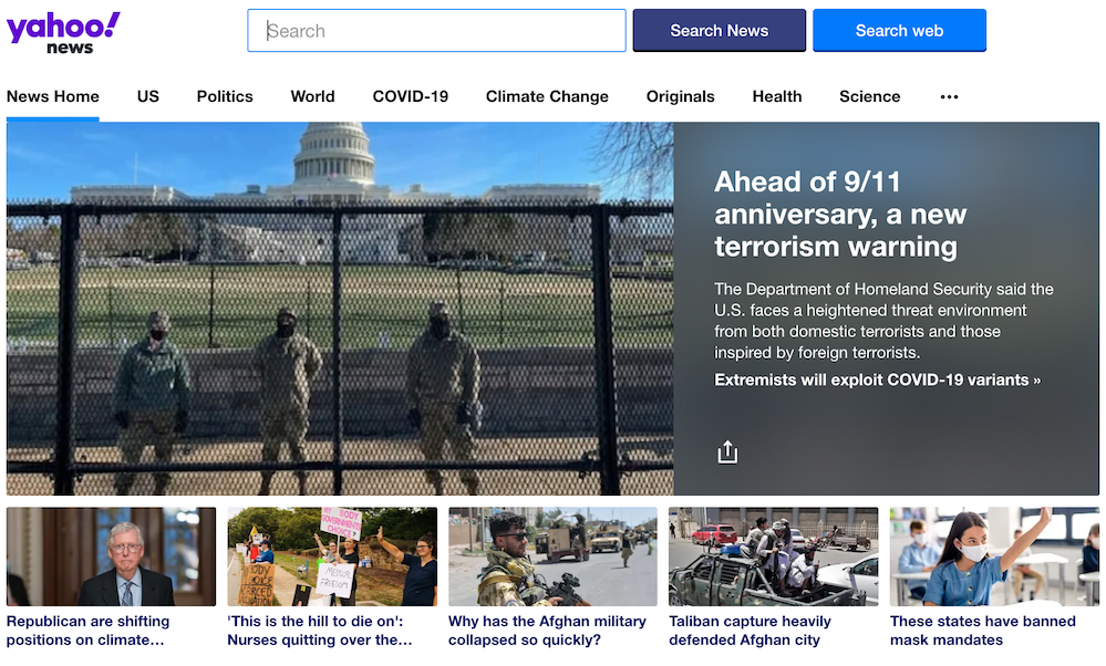 Yahoo! News is one of the top news aggregators in the country, which filters the most popular and promoted news to the top.