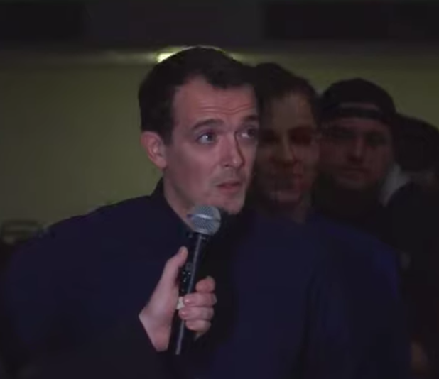 The more confrontational questions fluster and upset him and he stumbles and the mask slips.