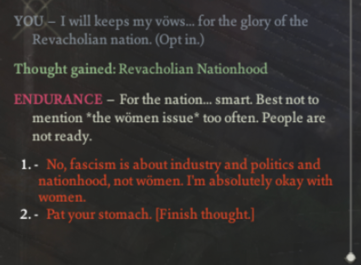 At one point in the game, the struggles of Andrew Anglin to explain the woman issue are mentioned: