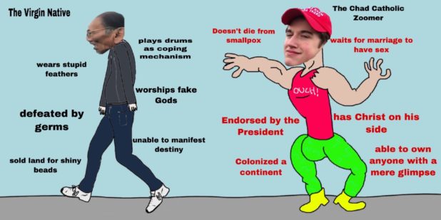 Then the Injuns came in to back up the black assault with their disgusting drum.