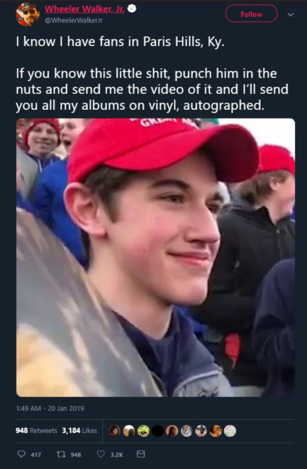 The “Wheeler Walker Jr.” identity is a fake country music identity he took on in order to mock the white race.