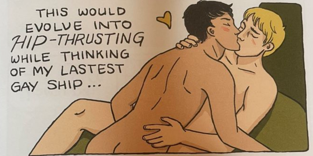 Timmy opens the book to find cartoon pictures of men doing anal sex and giving each other blowjobs. Timmy looks both shocked and confused – as well as a bit excited.