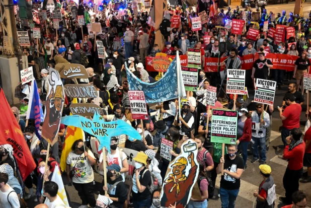 Anti-Israel demonstrators marched toward the United Center – where the Democratic National Convention wraps up Thursday night – with a message to Vice President Kamala Harris: Democrats are funding a “genocide” of Palestinian people and are not doing enough to get a ceasefire deal.