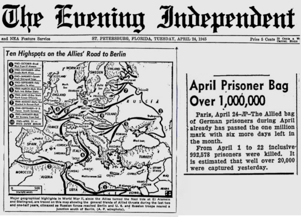 Late addition: I just found this image of an old AP news report in which, on April 24th, 1945, the Allies bragged of already having captured 1 million German soldiers and killing 992,978 prisoners!