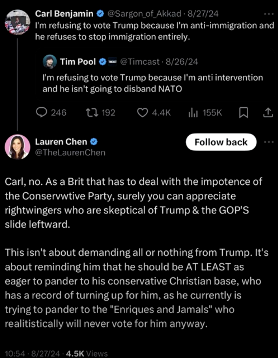 That said, Chen was telling people not to vote for Trump. This is from just a couple weeks ago: