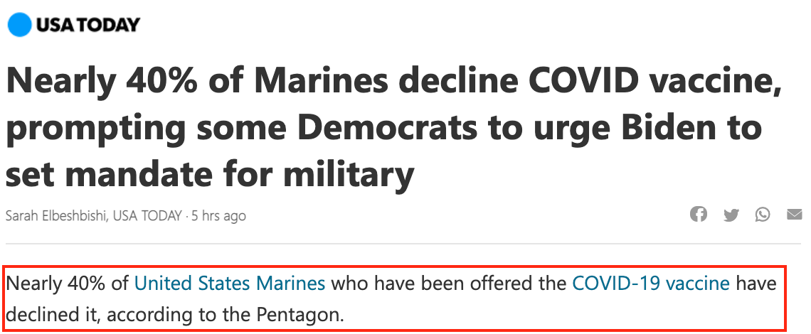 40% of the marines are refusing the vaccine, and Biden is trying to force them to take it.