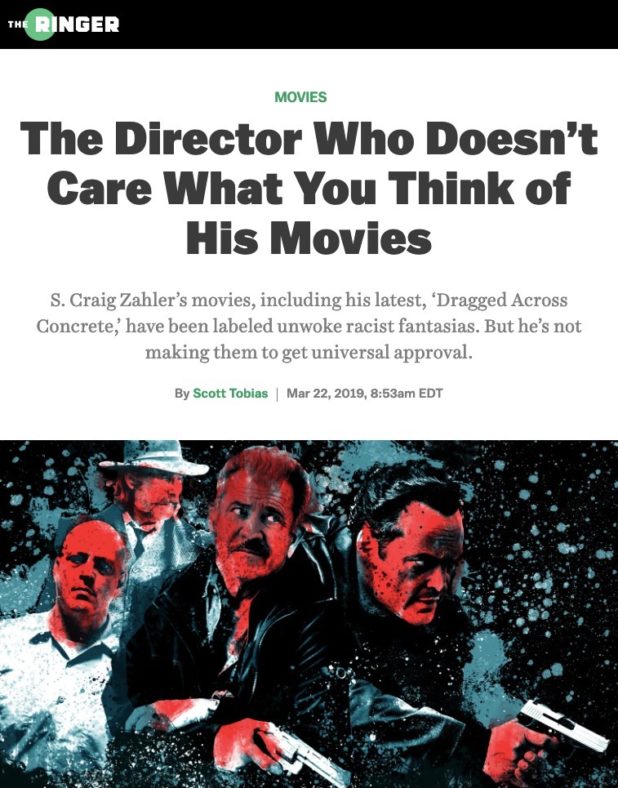 Dragged Across Concrete was written and directed by the weird B-movie Jew S. Craig Zahler, who made the pretty good and relatively politically incorrect western film Bone Tomahawk with Kurt Russell.