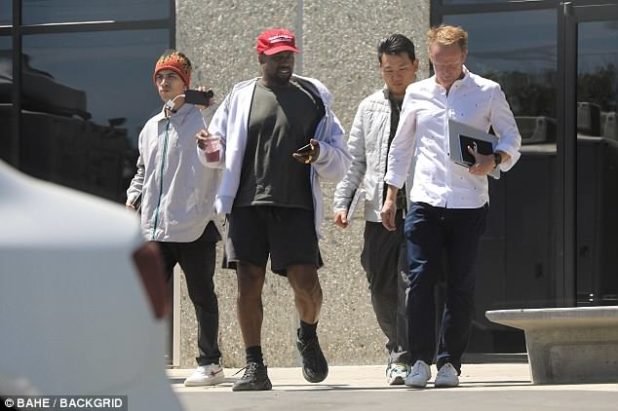 Kanye West put his love for Donald Trump on full display as he donned his MAGA hat while leaving his California studio not long after he traded adoring tweets with the president and blasted former president Barack Obama on Twitter.
