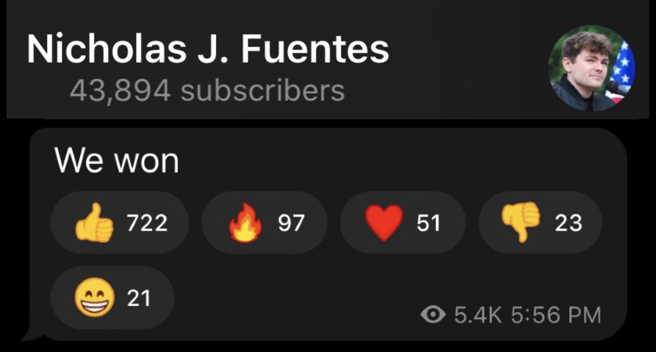 If censorship were to be repealed, dominos would fall quickly, and within a matter of a few short years, Nick Fuentes would be installed as the King of America, and the people would live in peace and freedom under Draconian Version of Fundamentalist Christianity™.