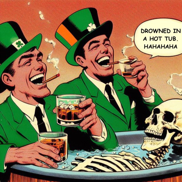 Before seeing this story hot tub drowning joke outrage story, I was still trying to come up with a term for what we, the Irish, should be referring to each other as. “He’s a brother” is ground too well-staked by the niggers. There has to be a term of endearment by which diaspora and field Irish can use to refer to one another. We are a tribal, alien group, forced to live in captivity among the heathens, and we need to have brotherhood and endearment towards one another (insofar as that is possible for Irishmen).