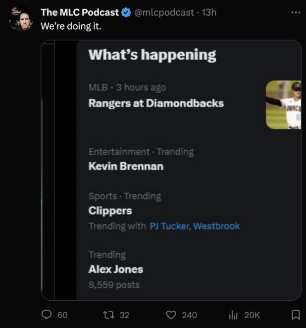 But you see how it’s your name that’s trending. “MLC Podcast” is not trending.